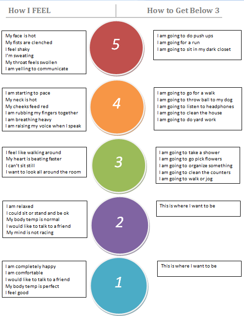 The final component to this would be to tie a tangible reward into the plan reinforcing both staying at a 3 or lower or if the child gets to a 4/5, they appropriately use a strategy to get back below 3. Both are to be rewarded after this is the replacement behavior we want.